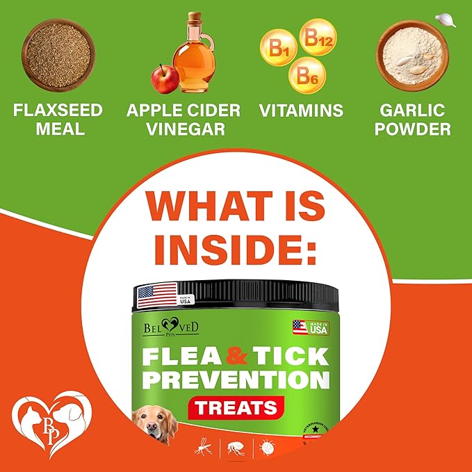 • ✅NO AGE LIMITS: the antiflea canine treats can be monthly use for adult dogs and puppy. Our care product can be added in food. PLEASE NOTE: this product is not a flea and tick medicine. This product is formulated with natural and safe ingredients that help repel ticks and fleas naturally, however, it is not a cure.