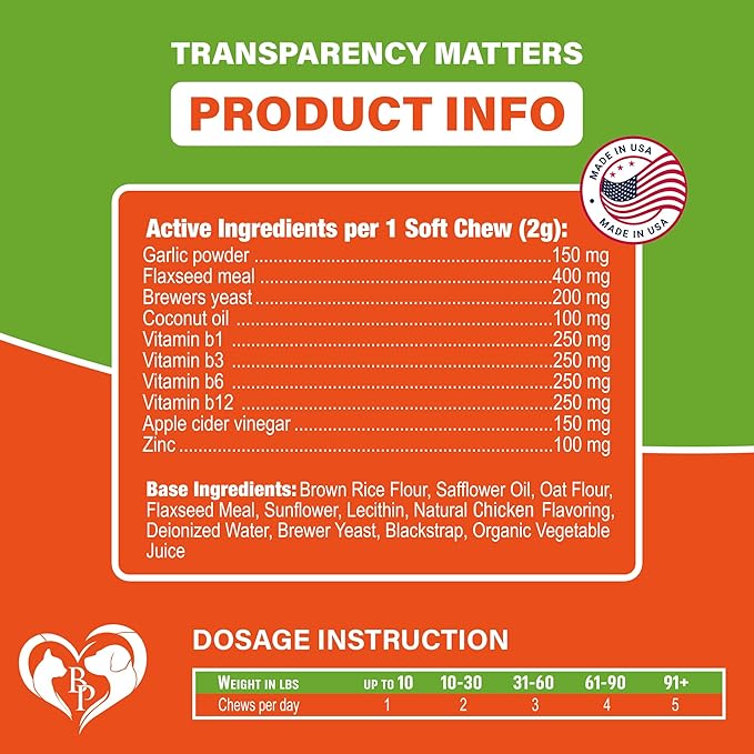• Active Ingredients : Garlic Powder, Flaxseed meal, Vitamin B1, B3, B6, B12