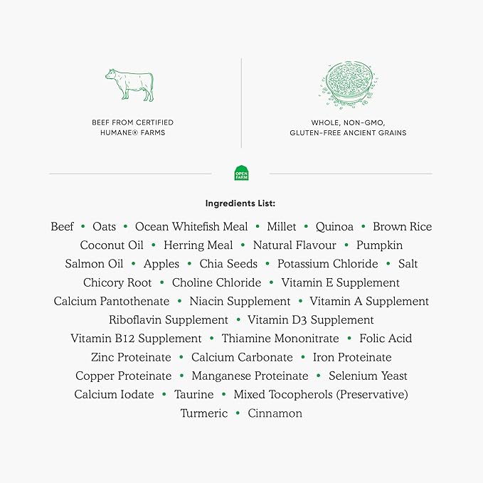 Open Farm Ancient Grains Dry Dog Food, Humanely Raised Meat Recipe with Wholesome Grains and No Artificial Flavors or Preservatives (Grass-Fed Beef Ancient Grain, 4 Pound (Pack of 1))