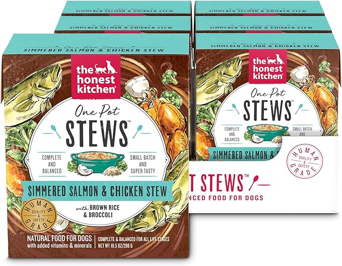 The Honest Kitchen One Pot Stews: Simmered Salmon & Chicken Stew with Brown Rice & Broccoli Wet Dog Food, 10.5 oz x6