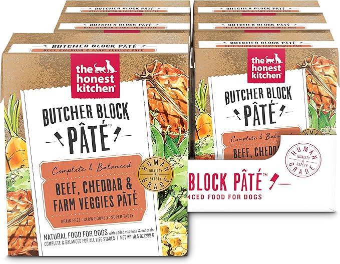 The Honest Kitchen Butcher Block Pâté: Beef, Cheddar & Farm Veggies Wet Dog Food, 10.5 oz (Pack of 6)