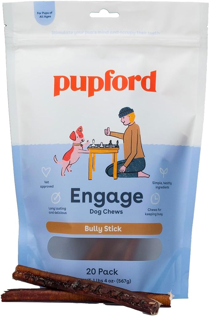 Pupford Thick Bully Sticks for Dogs & Puppies, Smoked for Improved Smell, Natural, Long-Lasting, Single Ingredient Chews for Small & Medium Breeds (6", 20 Count)