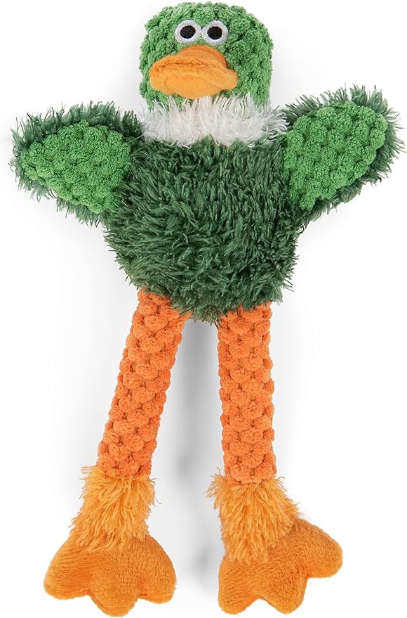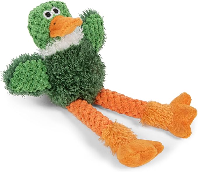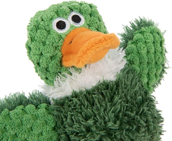 goDog Checkers Just for Me Skinny Duck Squeaky Plush Dog Toy, Chew Guard Technology - Green, Mini