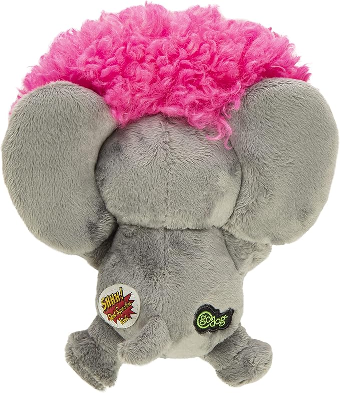 goDog Crazy Hairs Elephant Silent Squeak Plush Dog Toy, Chew Guard Technology - Gray, Small