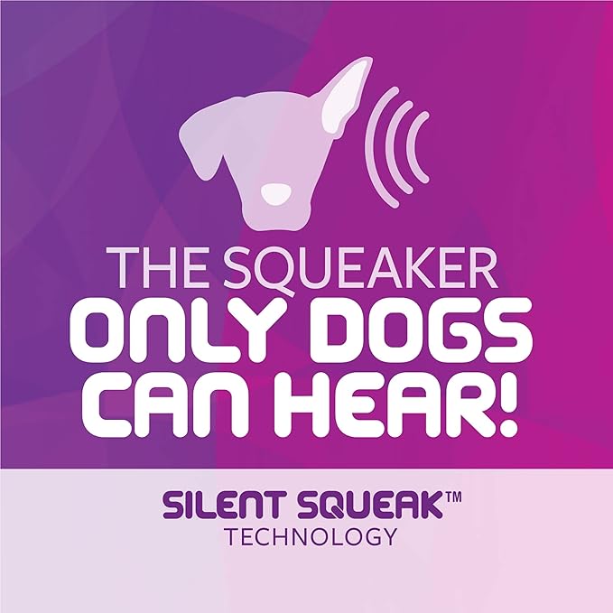 • SILENT SQUEAKER: Designed with a patented squeaker tuned to an ultrasonic frequency out of human hearing range, but still perfectly audible to dogs; provides the same fun and excitement to your pup as a classic squeaky toy, but without the extra noise