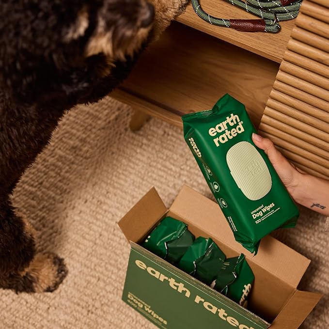 Earth Rated Hypoallergenic Dog Wipes, Cleaning and Odor-Controlling Grooming Wipes for Paws, Body, and Butt, Perfect for Puppy and Adult Dogs, Unscented, 400 Count