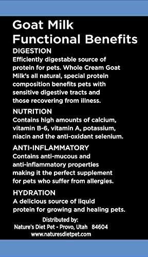 • LACTOSE FREE - Naturally lactose free, Nature's Diet Goat Milk is easy to digest and a perfect supplement for dogs suffering from allergies