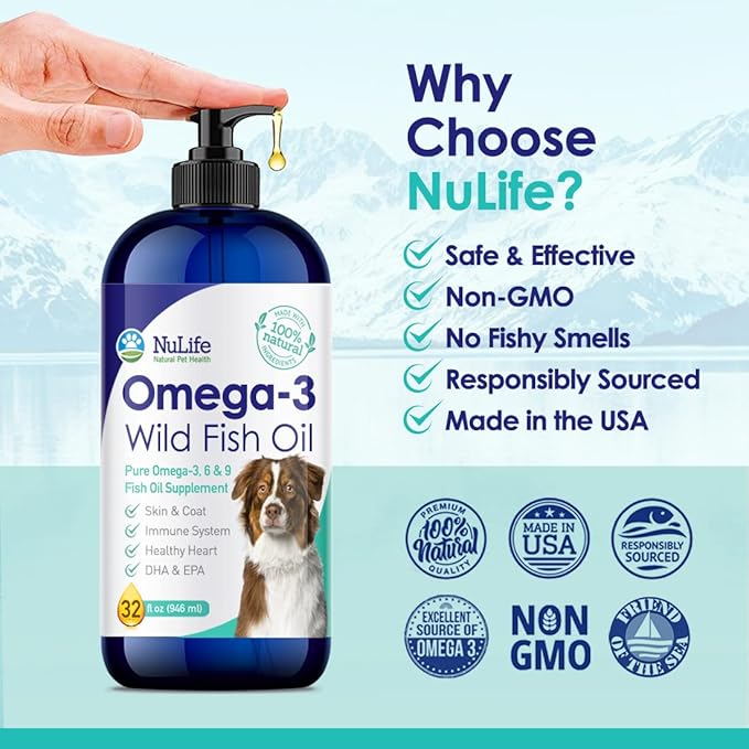 • A tasty treat that's low odor & mess-free - For pet parents looking for an alternative to capsules or soft chews, all it takes is a few quick pumps from our mess-free pump dispenser to easily mix-in with your dogs wet or dry food. Without the strong scent of most fish oils you’ll find small, medium, and large breeds simply can’t get enough of the rich nutritious taste of our 32oz omega oil for dogs.