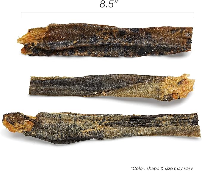 • HUMAN GRADE: This high protein dog chew is made with only dehydrated wild caught fish and loaded with Omega-3s. It meets the rigorous FDA safety standards to use the label 'human grade', ensuring the highest quality dog treats.
