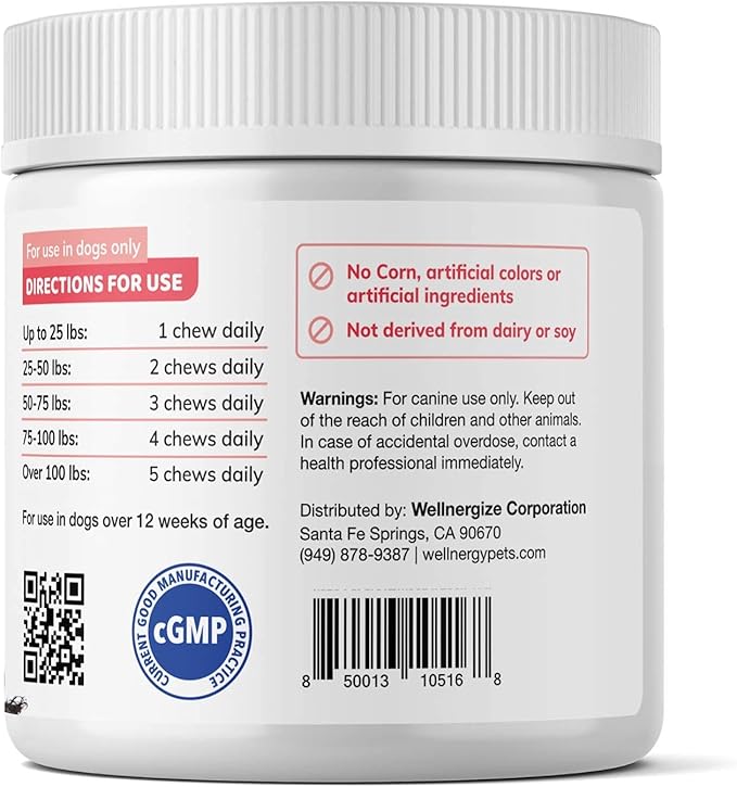 • INGREDIENTS THAT GIVE RESULTS - NO GMOs, CORN, SOY or PRESERVATIVES - At Wellnergy Pets we’re committed to premium quality ingredients and strict safety standards in all our products. Our Skin and Coat Support supplement soft chew is made in the USA with only the highest-quality natural ingredients.