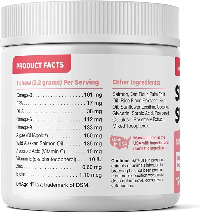 • ESSENTIAL MINERAL AND VITAMIN SUPPORT - Vitamin C and Zinc for anti-inflammatory and antioxidant benefits, while Biotin and Vitamin E work to help soothe dryness, hotspot, itch, and irritation, while also providing an amazing, shiny, soft and healthy coat for your pet.