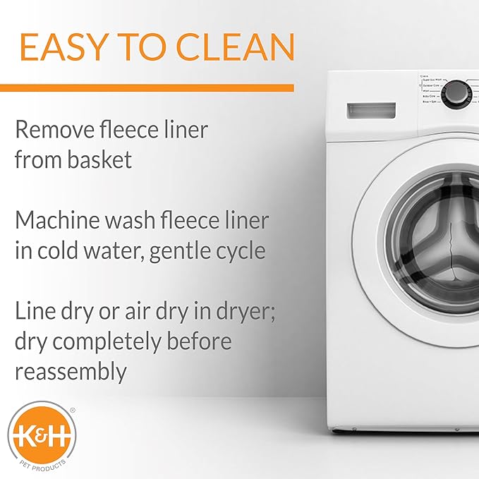 • WASHABLE: Removable fleece liner in the basket is machine washable for easy care