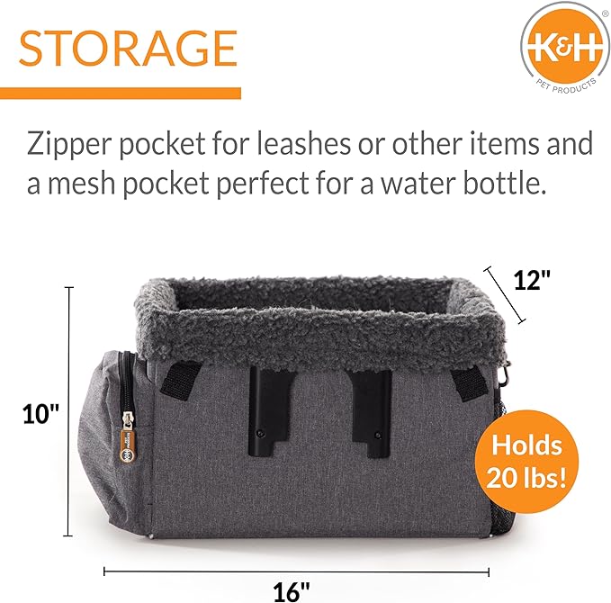• STORAGE: Zipper pocket for storing leashes and treats, mesh pocket for holding water bottles.