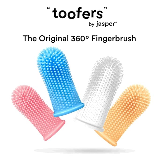 Jasper Dog Toothbrush - 360º Finger Tooth Brush Kit Ergonomic Design, Full Surround Bristles for Easy Teeth Cleaning, Dental Care for Puppies, Cats and Small Pets, 4-Pack Multi-Colored