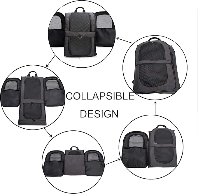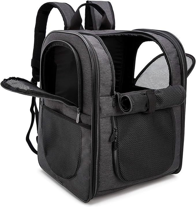 • BETTER CONSTUCTION-Well ventilated design for optimal airflow, two-way entry for easy access, top mesh window for more headroom and visibility, and thick, soft fleece bedding for your pet resting and relaxing. This backpack is firmly structured, providing ample room for your pet to move around.