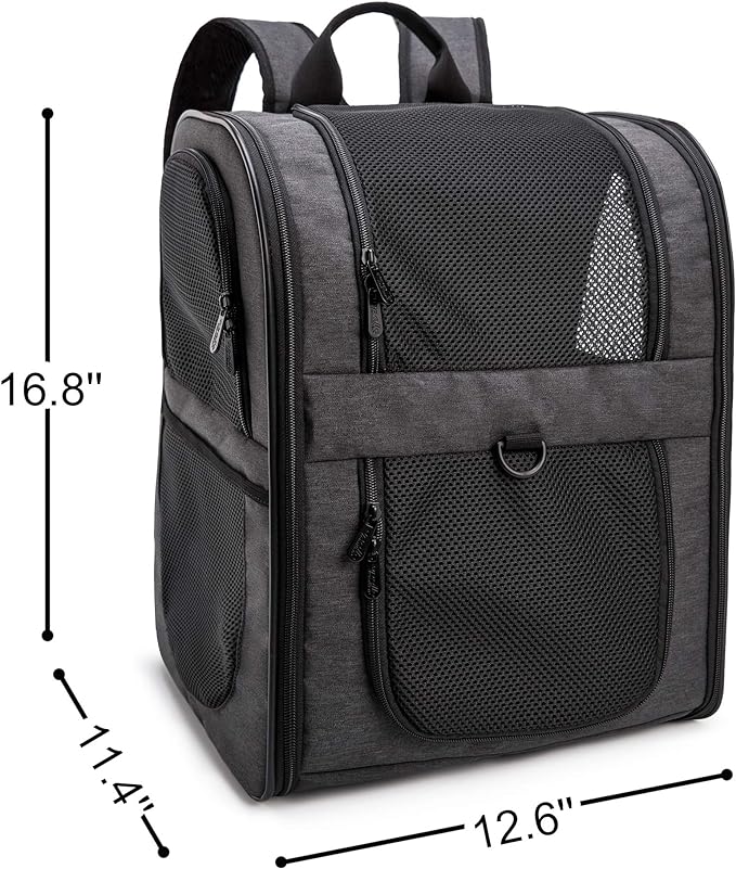 • LARGE SIZE-Designed for the maximum convenience and comfort for you and your pet while hiking, traveling, or taking your best friend to the vet, or going for a walk in the park. Measures approximately 11.4" x 12.6" x 16.8" (L x W x H),larger than most competitors in the market.Easily fits medium cats&dogs,even large sized cats and other medium pets.