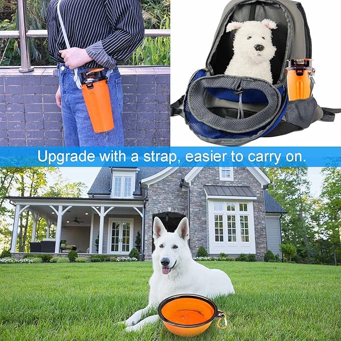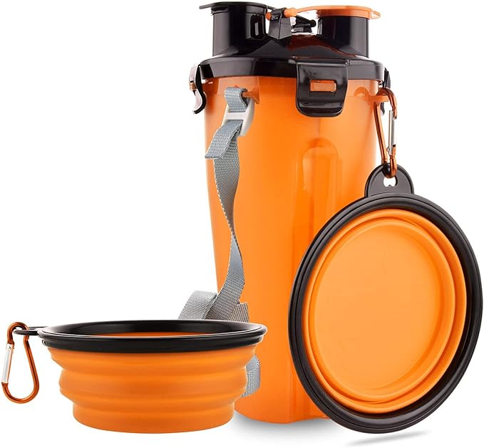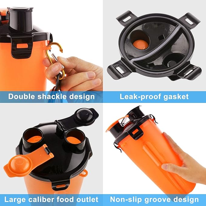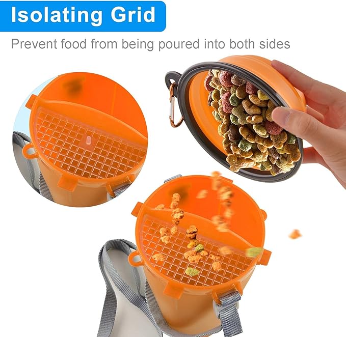 Dog Travel Water Bottle Collapsible Bowls, 2 in 1 Pet Food Container with Collapse Bowls, Outdoor Portable Water Bowls for Walking, Traveling, Camping and Hiking (Orange)