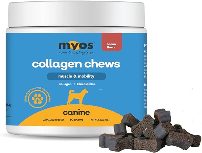 MYOS Canine Muscle & Mobility Chews – Natural Collagen & Glucosamine for Dogs - Bacon Flavor Joint Supplement for Muscle, Bone & Joint Support, 60 Count