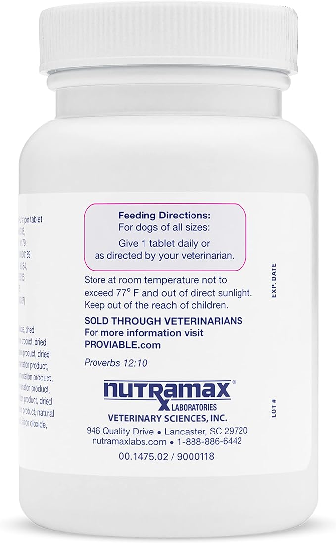 Nutramax Laboratories Proviable Digestive Health Supplement Multi-Strain Probiotics and Prebiotics for Dogs, With 7-Strains of Bacteria, 60 Chewable Tablets
