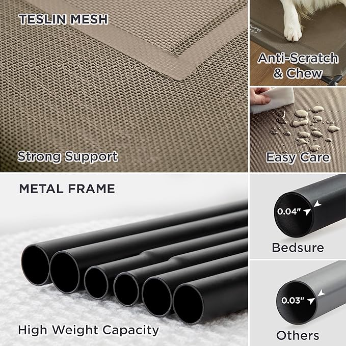 • Strong & Durable: Heavy-duty Teslin mesh holds up against scratching and chewing, providing excellent support and even pressure distribution to reduce joint and muscle pain. The strength-tested lightweight metal frame supports dogs up to 85 lbs.