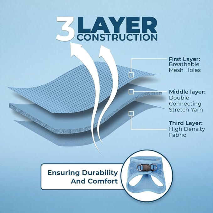 • ALL WEATHER MESH: Made with a soft, breathable air mesh, this lightweight pet harness is perfect for walks all year round.