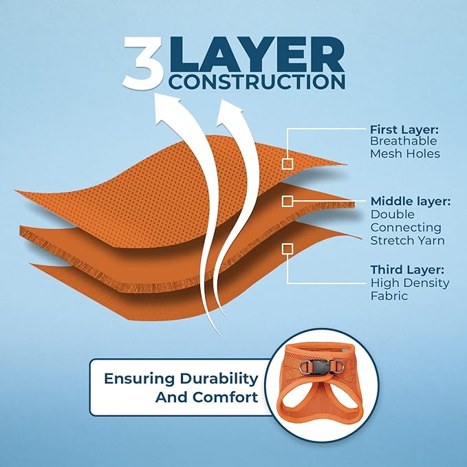 • ALL WEATHER MESH: Made with a soft, breathable air mesh, this lightweight pet harness is perfect for walks all year round.