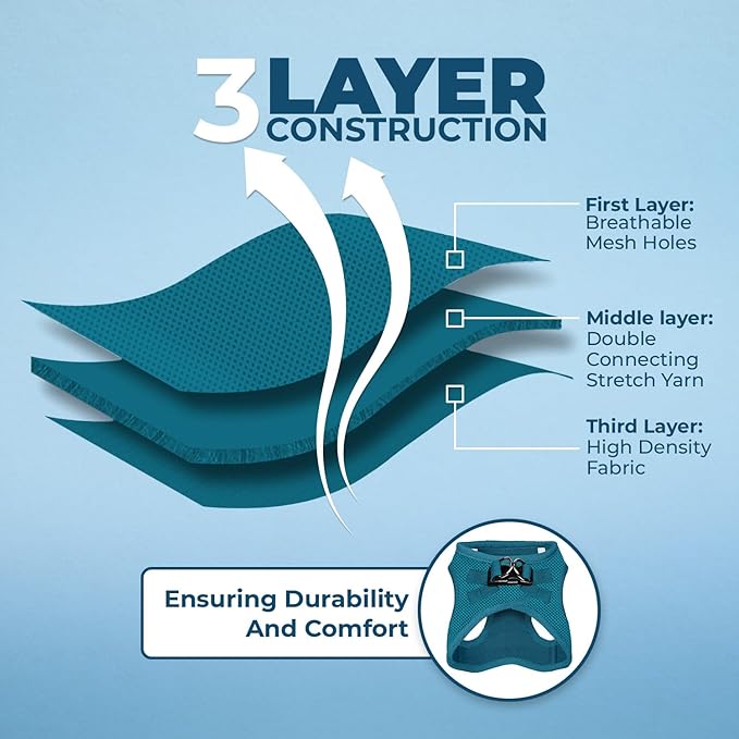 • ALL WEATHER MESH: Made with a soft, breathable air mesh, this lightweight pet harness is perfect for walks all year round.