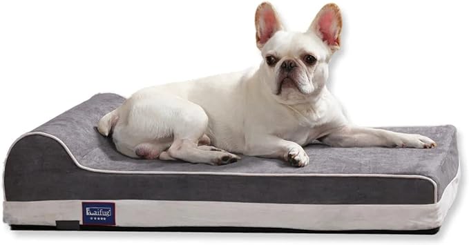 Laifug Orthopedic Memory Foam Dog Bed with Pillow and Durable Water Proof Liner & Removable Washable Cover & Smart Design Medium (34"x22"x7"), Slate Grey