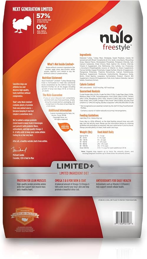 • LIMITED, NOT LESS - Nulo Freestyle Limited Ingredient dog food is specially formulated for dogs who prefer a simpler diet. Made without common filler ingredients like corn and tapioca, with no artificial colors or preservatives.