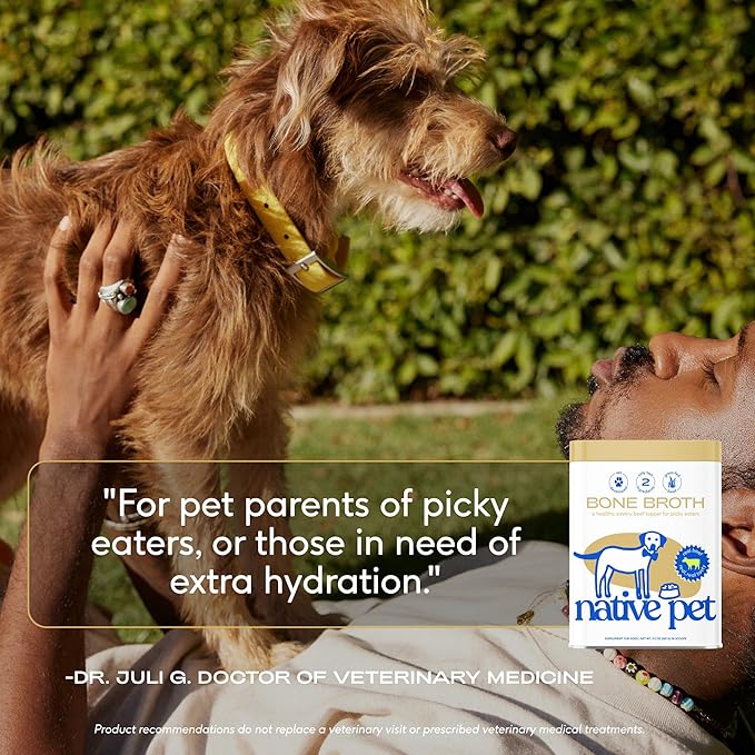 • A BONE BROTH FOR DOGS | Formulated by vet nutritionists. Native Pet’s bone broth for dogs is made with natural ingredients to support your pet’s health. It’s safe to use and easy to use to supplement your dog’s food.