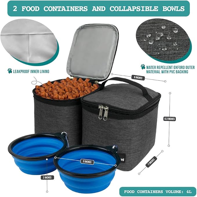 • PET SUPPLIES DOG DIAPER BAG: The dog travel backpack helps dog owners easily organize treats, kibbles, toys, leashes, and all other pet accessories and training supplies. The doggie traveling backpack comes with two food containers and two collapsible silicone dog bowls, ensuring that your pet is well-fed and hydrated during your hiking camping trip. Each food container has a 4L capacity, making it a camping gear must have for all small, medium, and large size dogs and cats.