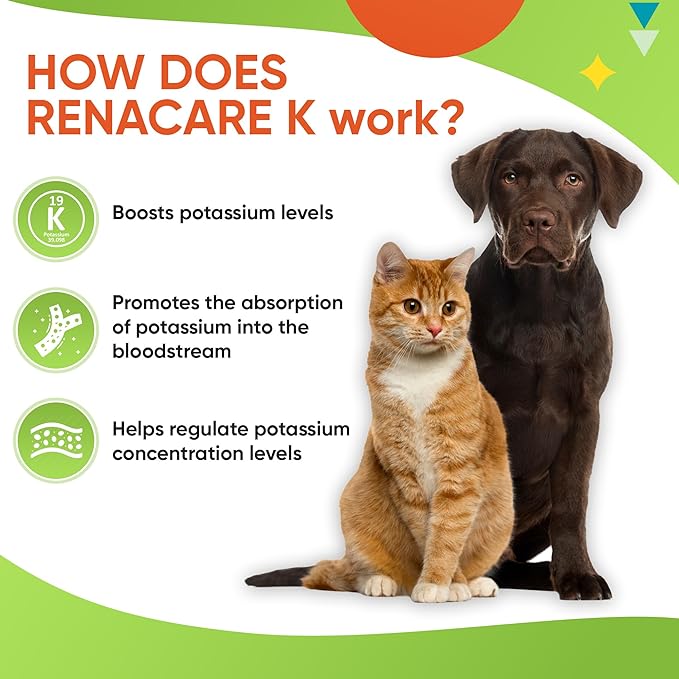 • RenaCare K is our potassium gluconate supplement is highly palatable & supports normal renal health in Dogs & Cats