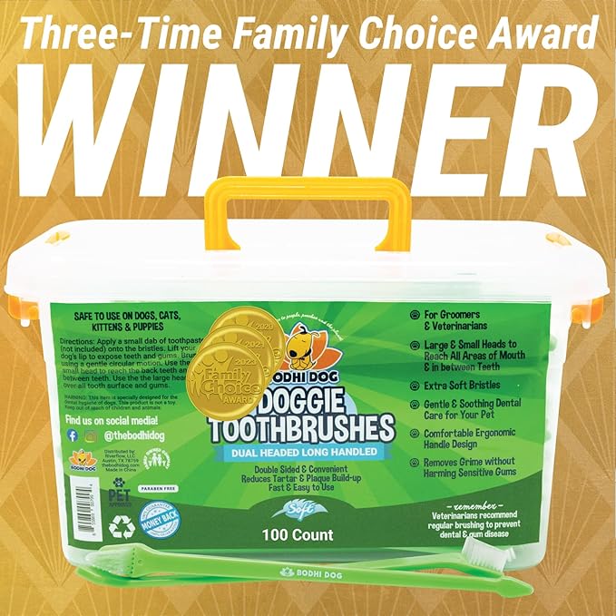 Bodhi Dog Dual-Headed Long Dog & Cat Toothbrush | Puppy Toothbrush with Soft Bristles for Pet Dental Care | Easy Teeth Cleaning Dog Toothbrush, 100 Count