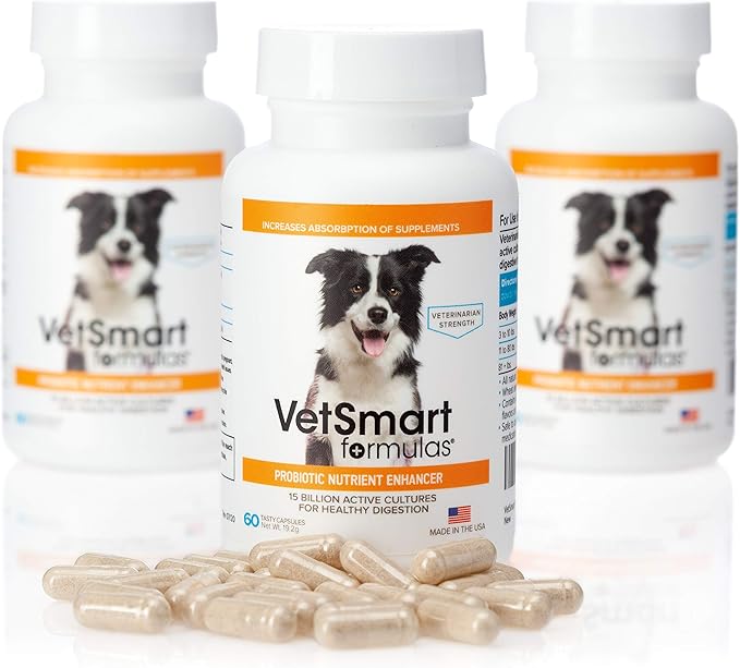 • GUARANTEED RESULTS – Our proprietary formula is designed by Vets and for Vet offices and is the best dog probiotic on the market today. There are NO artificial flavors, colors, or fillers. This product is wheat-free and safe for dogs with allergies. VetSmart Formula products are 100% MADE IN THE USA to the highest quality standards.