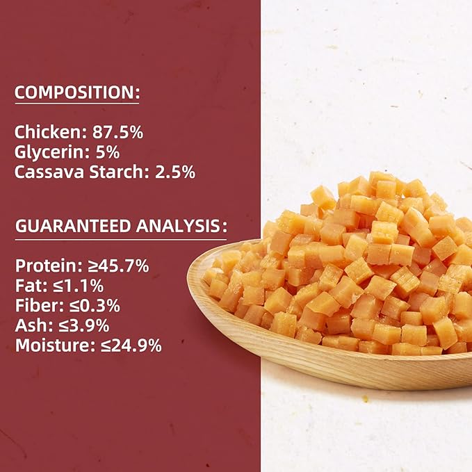 • [Safe Production Process] Low-temperature baking releases enticing meat flavor. Slow-roasted at 50°C through 9-step process with a production time exceeding 30 hours, the chicken gradually transforms into jerky, resulting in minimal nutrient loss while preserving the flavor and taste of chicken.