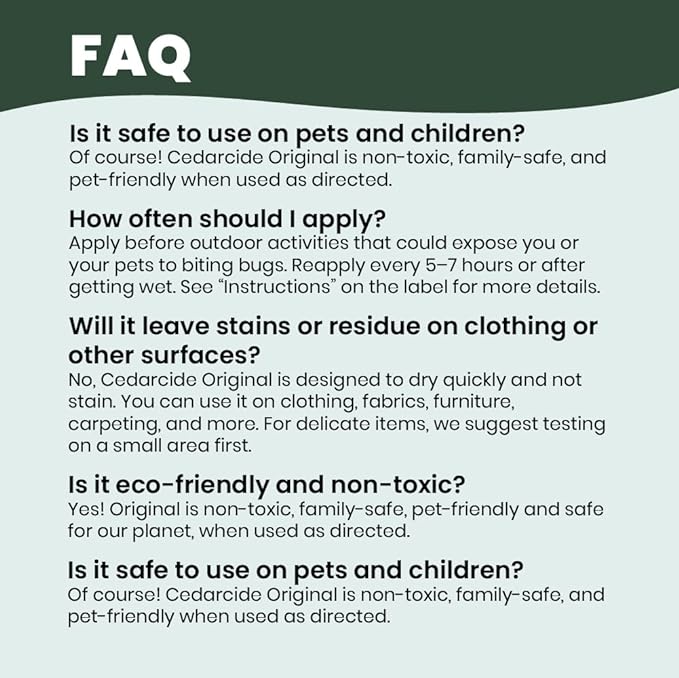• 🌎 ECO-FRIENDLY; FAMILY-SAFE: Cedarcide Original is designed to be safe for people, pets and the planet when used as directed.
