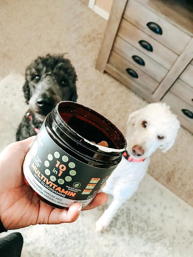 • 10 Benefits, 1 Daily Vitamin That Is PhD Approved – Our 10-In-1 Multivitamin Combines The Most Essential Dog Supplements And Vitamins Including Glucosamine, Probiotics, Vitamins & Omegas So Your Dog Can Live Their Best Life. We Promise More Energy And Less Health Problems! For Big Dogs, Medium-Sized Dogs, And Small Dogs Of Any Age