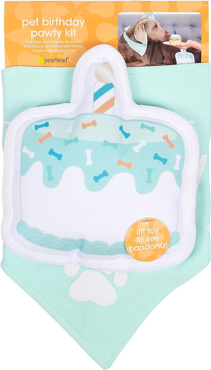 Pearhead Pet Birthday Pawty Kit, Pet Birthday Party, Includes Dog Toy, Party Hat, and Bandana, Multi One Size