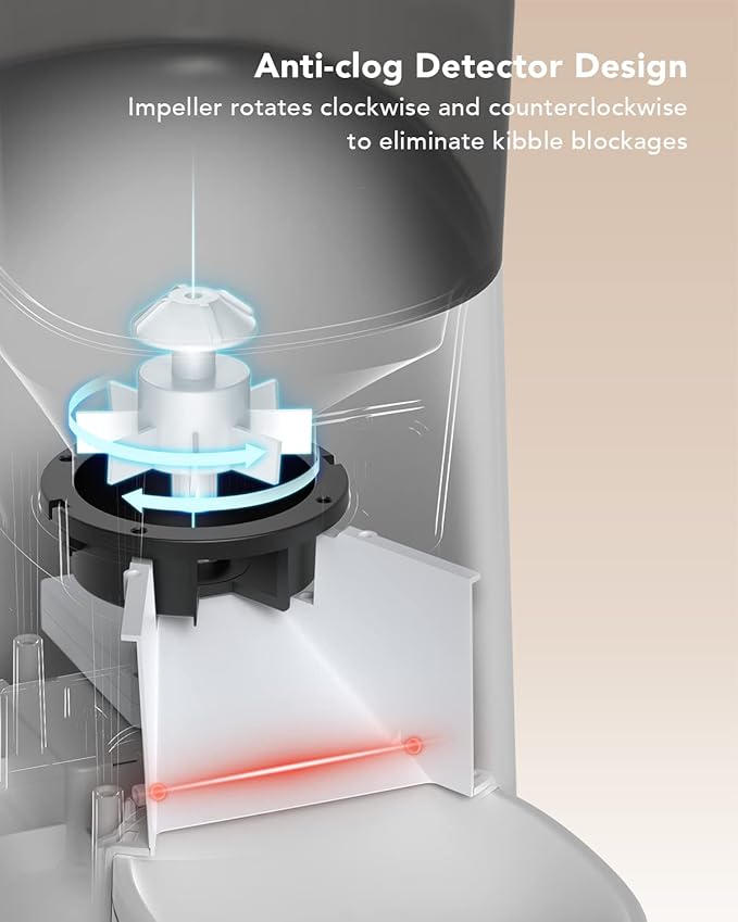 • Right Portions at the Right Time: PETLIBRO automatic dog feeder up to 6 meals daily with 1-50 portions(15ml each), Large food tank with 6L capcity. Equipped with anti-stuck function, no more pre-dawn wake up calls, or worry when travelling
