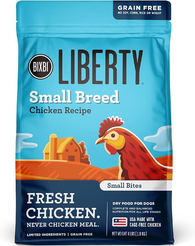 BIXBI Liberty Small Breed Grain Free Dry Dog Food, Chicken, 4 lbs - Fresh Meat, No Meat Meal, No Fillers - Gently Steamed & Cooked - No Soy, Corn, Rice or Wheat for Easy Digestion - USA Made
