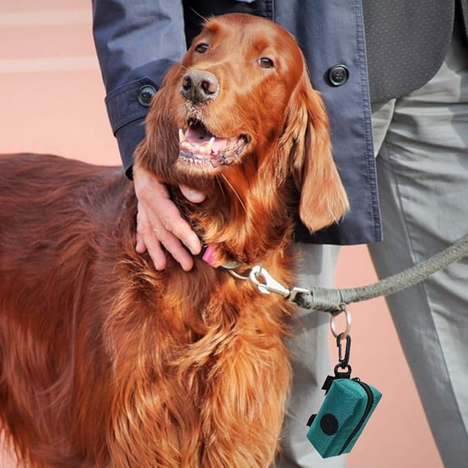 SLSON Pet Waste Bag Dispenser Zippered Pouch,Portable Dog Poop Bag Holder Leash Attachment Lightweight Fabric Bags (Green)