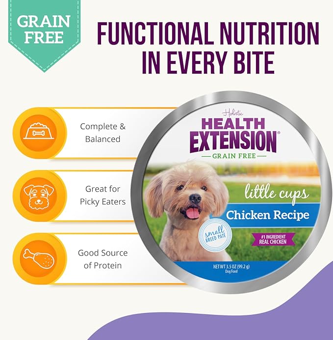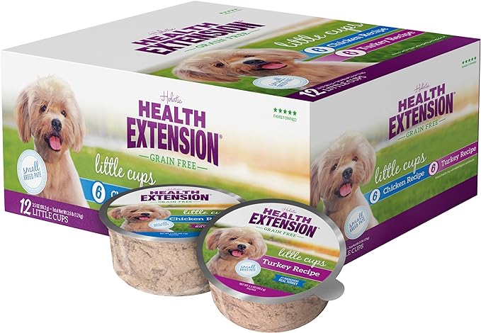 Health Extension Wet Dog Food, Grain-Free, Natural Food Cups for Small Breed Dogs, Include 6 Chicken Recipe Cups & 6 Turkey Recipe Cups, Each Cup Weight (3.5 Oz / 99.2 g)