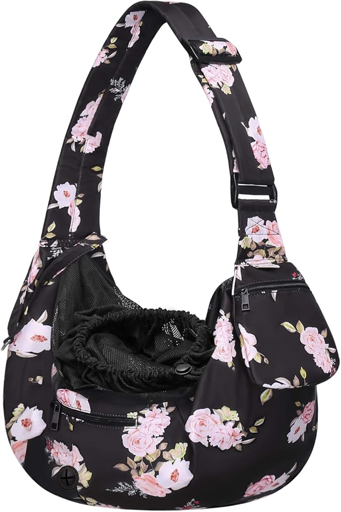 MOSISO Dog Cat Sling Carrier, Pet Dog Carrier Camellia Tote Bag Hands Free Adjustable Padded Strap Breathable Polyester Soft Carrying Travel Shoulder Bag with Front Pocket for Small Dog Cat, Black