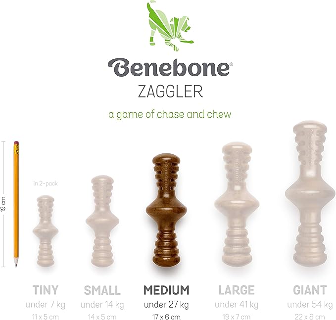 Benebone Zaggler Rolling Dog Chew Toy for Aggressive Chewers, Real Chicken, Made in USA, Medium