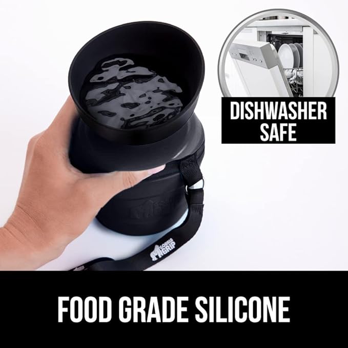 • DISHWASHER SAFE FOOD GRADE SILICONE: the water bottle’s fold cap is constructed of premium food grade silicone that is dishwasher safe for a fast and easy clean; this means you can spend less time cleaning up after your adventure, and more time playing with your furry friend