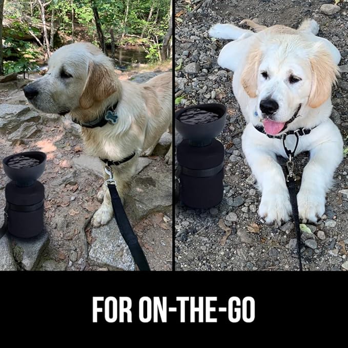 Gorilla Grip No Spill Portable Dog Water Bottle with Built in Bowl, Food Grade Silicone Leak Proof Pets Travel Drink Dispenser, Puppy Walk Training, Pet Hiking Essentials, Trip Accessories, Black