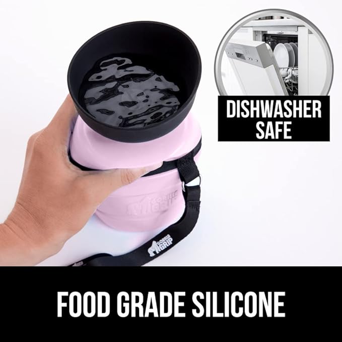 Gorilla Grip No Spill Portable Dog Water Bottle with Built in Bowl, Food Grade Silicone Leak Proof Pets Travel Drink Dispenser, Puppy Walk Training, Pet Hiking Essentials, Trip Accessories, Pink