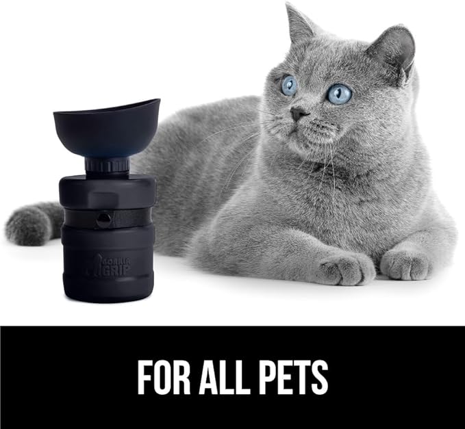 Gorilla Grip No Spill Portable Dog Water Bottle with Built in Bowl, Food Grade Silicone Leak Proof Pets Travel Drink Dispenser, Puppy Walk Training, Pet Hiking Essentials, Trip Accessories, Black