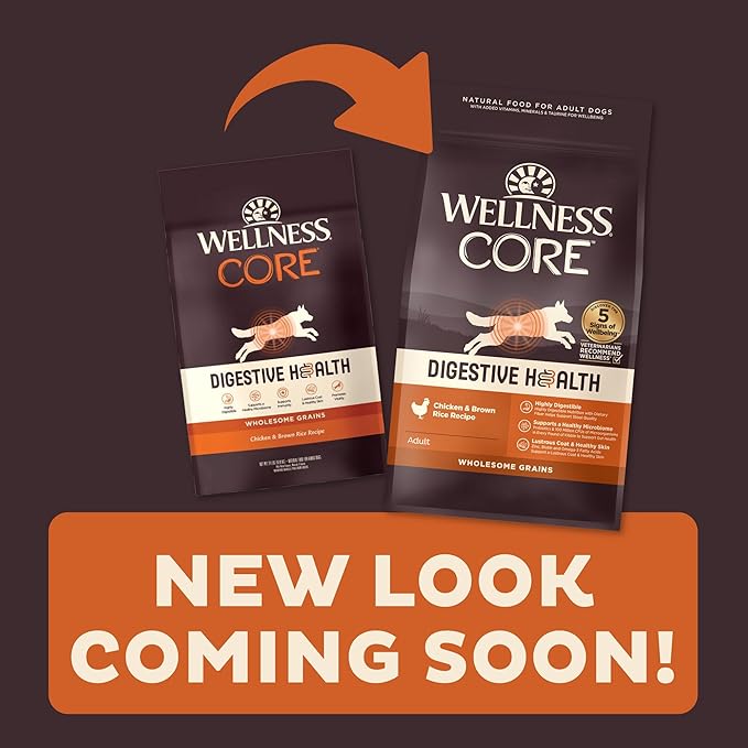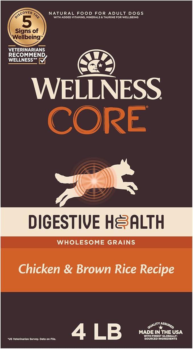 Wellness CORE Digestive Health Dry Dog Food with Wholesome Grains, Highly Digestible, for Dogs with Sensitive Stomachs, Made in USA with Real Chicken (Adult, 4-Pound Bag)
