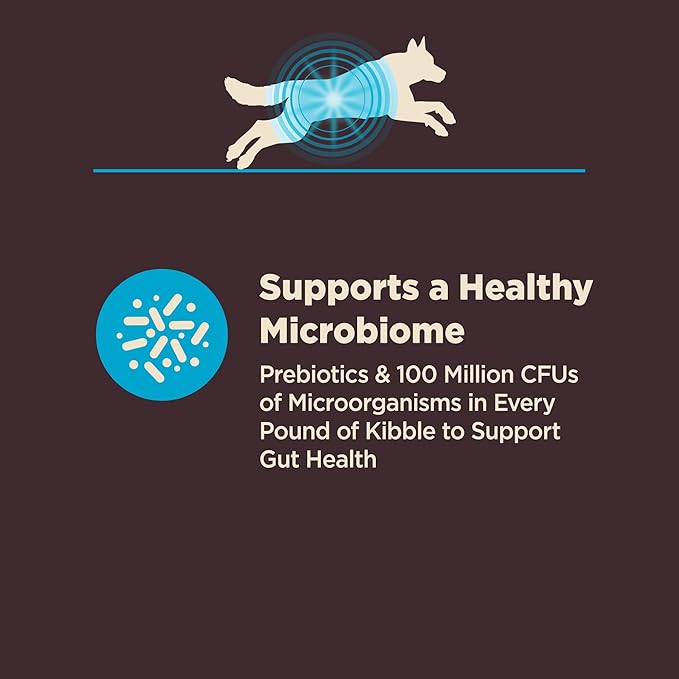 • SUPPORTS HEALTHY SKIN AND COAT: Keeping the microbiome in a healthy balance helps protect against excessive inflammation or itchy skin. The inclusion of protein and omega fatty acids in the kibble ensure your dog’s coat stays lustrous and soft.